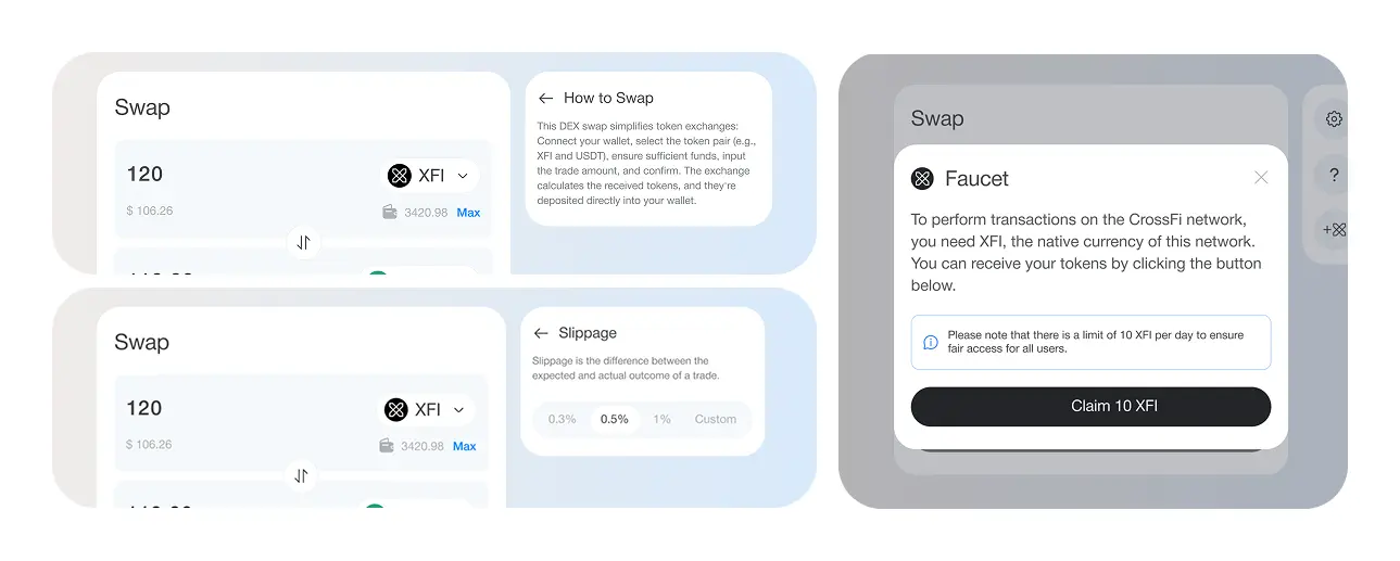 The built-in Faucet removes a major drop-off point: users don’t leave the product to hunt for gas, and can complete their first swap faster.